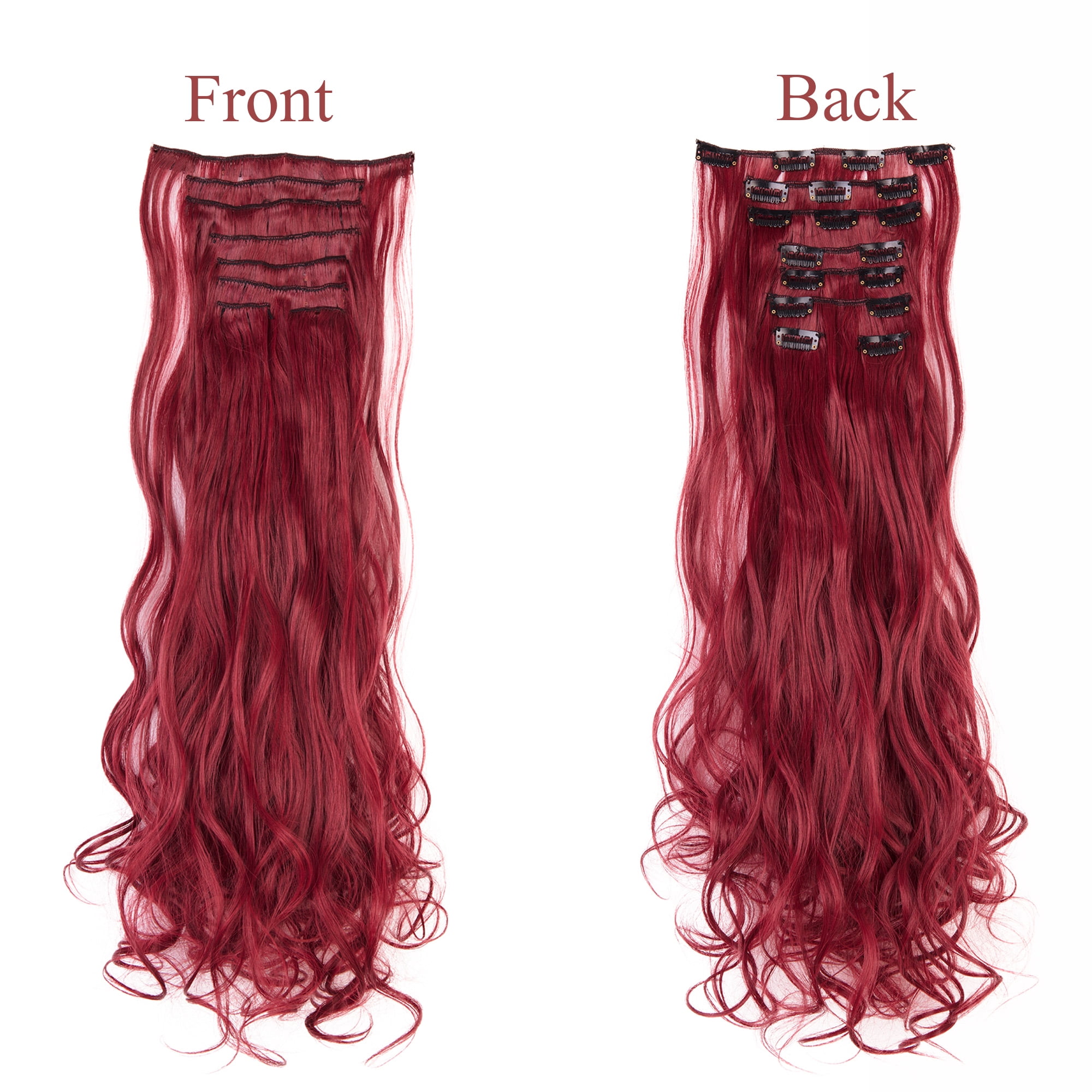 Shcke Clip In Hair Extensions 17 Inch Hairpieces 8 Pieces Set Clip On Hair Extension Curly Double Weft Hair Extensions Synthetic Hairpiece For Women Dark Red Walmart Com